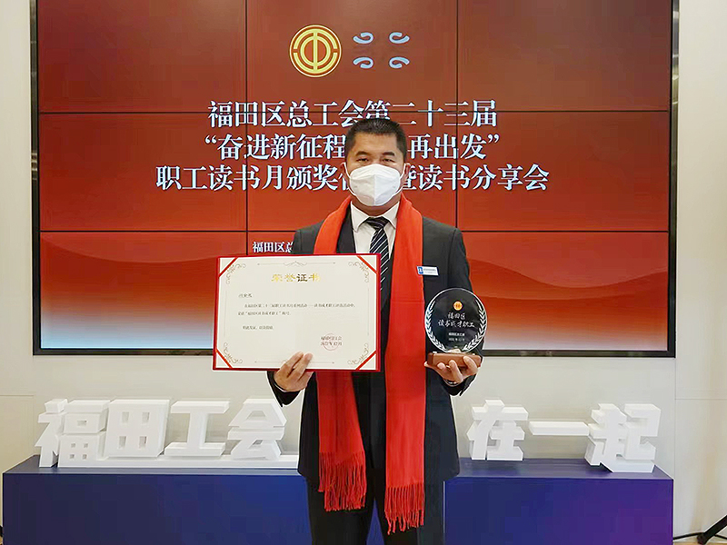 近日,福田區(qū)總工會、福田區(qū)文學藝術界聯(lián)合會主辦的第二十三屆“奮進新征程·閱讀再出發(fā)”職工閱讀月頒獎儀式暨讀書分享會圓滿舉行,國貿(mào)美生活公司閆金芝榮獲“福田區(qū)讀書成才職工”稱號。