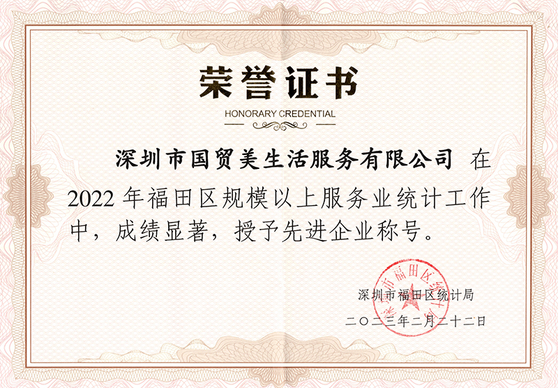 近日,深圳市福田區(qū)統(tǒng)計局發(fā)布2022年規(guī)模以上服務類企業(yè)統(tǒng)計工作表彰結果,國貿美生活公司榮獲“2022年福田區(qū)規(guī)模以上服務業(yè)統(tǒng)計先進企業(yè)”稱號。