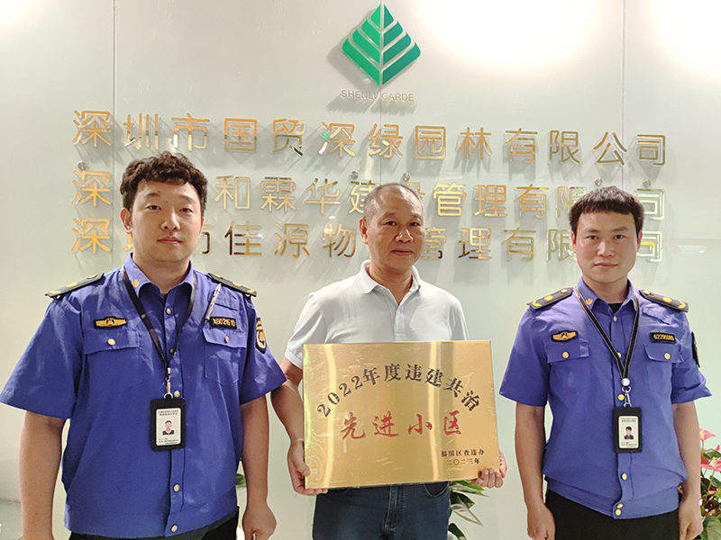 近日,國貿(mào)深綠園林公司所屬佳源物業(yè)公司在管項目綠化大廈小區(qū)在福田區(qū)違章建設(shè)整治工作中表現(xiàn)突出,實現(xiàn)零違建,榮獲“2022年度違建共治先進小區(qū)”稱號。