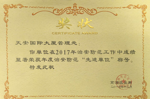 日前,羅湖區(qū)南湖派出所組織轄區(qū)物業(yè)單位召開(kāi)表彰大會(huì)。深物業(yè)集團(tuán)合資企業(yè)天安物管公司喜獲“2017年度治安防范先進(jìn)單位”和“2017年度優(yōu)秀物業(yè)單位”榮譽(yù)稱號(hào)。公司員工湯建榮獲“2017年度治安防范先進(jìn)個(gè)人”稱號(hào)。