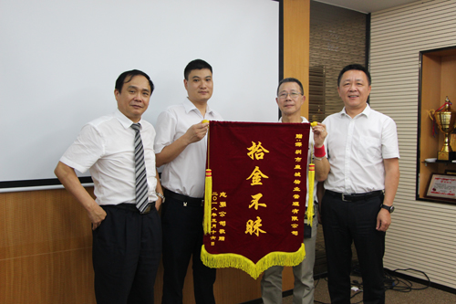 5月16日中午,賀銳前往員工食堂途中,拾獲25000元現金港幣,為尋找失主,他在原地等候約10分鐘,沒有失主前來尋找認領。賀銳立即向公司匯報了相關情況,并將拾得現金送至福強派出所。返回公司后,賀銳通過調取監(jiān)控、多方查找,得知失主身份并取得聯系,與失主一同前往福強派出所辦理手續(xù)將拾獲現金取回。