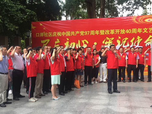 為慶祝中國共產(chǎn)黨成立97周年,6月29日,皇城物管公司黨支部聯(lián)合福田口岸社區(qū)黨委開展“不忘初心,牢記使命”主題黨日活動(dòng)。福田口岸社區(qū)轄區(qū)內(nèi)各單位黨員、皇城物管公司黨員群眾約200人參加活動(dòng)。