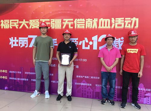 活動(dòng)當(dāng)天,皇城地產(chǎn)公司福昌二期項(xiàng)目部負(fù)責(zé)人組織部門(mén)全體員工及現(xiàn)場(chǎng)施工人員,前往福民新村廣場(chǎng)無(wú)償獻(xiàn)血,共計(jì)6400毫升。本次活動(dòng)公司組織到位,獻(xiàn)血人員踴躍積極,公司福昌二期項(xiàng)目部被深圳市紅十字會(huì)授予“無(wú)償獻(xiàn)血愛(ài)心單位”稱號(hào)。