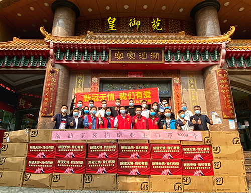 3月13日,皇城物管公司轄區(qū)愛心商戶“潮汕家宴”,向整個皇御苑片區(qū)伸出援手,在當(dāng)下口罩緊缺的情況下,為公司捐贈口罩2000個、口岸社區(qū)工作站捐贈口罩1000個,向皇御苑片區(qū)所有業(yè)主每戶捐贈口罩10個共70000個,共計捐贈口罩73000個。