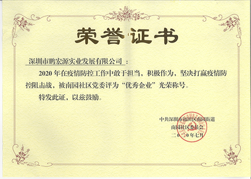 近日,福田區(qū)南園街道南園社區(qū)黨委授予商業(yè)運(yùn)營(yíng)公司所屬鵬宏源公司疫情防控“優(yōu)秀企業(yè)”稱號(hào),表彰公司在疫情防控工作中視疫情為命令、以防控為己任,敢于擔(dān)當(dāng),積極作為。 疫情期間,鵬宏源公司堅(jiān)持以實(shí)際行動(dòng)支援疫情防控,積極落實(shí)各項(xiàng)疫情防控措施,配合街道辦完成疫情監(jiān)測(cè)站點(diǎn)設(shè)置、實(shí)行公司大樓和停車場(chǎng)封閉管控、監(jiān)督租戶人員返深及營(yíng)業(yè)情況、推進(jìn)復(fù)工審批等各項(xiàng)工作。公司全體人員堅(jiān)守崗位,盡職盡責(zé),肩扛疫情防控基礎(chǔ)工作重?fù)?dān),全力筑牢安全防線。 公司將繼續(xù)聯(lián)合社區(qū),認(rèn)真貫徹上級(jí)單位關(guān)于疫情防控各項(xiàng)決策部署,持續(xù)完善防控策略和措施,把疫情防控做實(shí)做細(xì)做到位,不斷鞏固疫情防控成果。