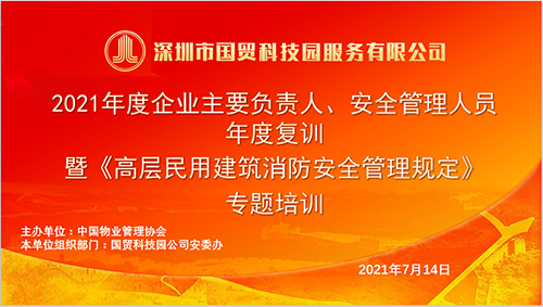 近日,國貿科技園公司以中國物業(yè)管理協(xié)會主辦的《高層民用建筑消防安全管理規(guī)定》公益宣講為課程,組織線上安全培訓,參訓人員包括公司相關負責人、安全分管負責人和安全管理人員。