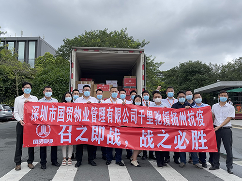 深物業(yè)集團(tuán)領(lǐng)導(dǎo)班子得知景悅物業(yè)公司情況后,安排國貿(mào)物管平臺公司馳援揚(yáng)州。8月2日,國貿(mào)物管成立專項(xiàng)小組緊急籌備防疫物資,全力支援景悅物業(yè)公司抗疫工作。在國貿(mào)物管的組織下,集團(tuán)物業(yè)板塊國貿(mào)科技園公司、國貿(mào)美生活公司、產(chǎn)業(yè)園分公司、高新區(qū)分公司、深綠園林公司等積極支援防疫物資,并于8月4日送達(dá)揚(yáng)州。