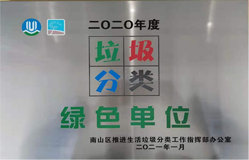 自2020年9月1日深圳市頒布實施《深圳市生活垃圾分類管理條例》以來,國貿(mào)科技園產(chǎn)業(yè)園分公司積極落實政府政策要求,近日,公司所屬深圳灣創(chuàng)業(yè)投資大廈項目獲評南山區(qū)“垃圾分類綠色單位”榮譽(yù)稱號。
