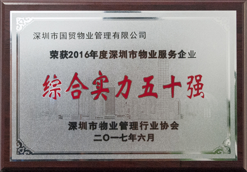2017-07-07國(guó)貿(mào)物管公司榮獲“2016年度深圳市物業(yè)服務(wù)企業(yè)綜合實(shí)力50強(qiáng)”稱號(hào)
