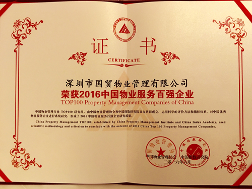 2016-07-04國貿(mào)物管公司獲評“中國物業(yè)服務(wù)百強(qiáng)企業(yè)”稱號
