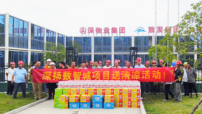 2023-08-21深物業(yè)·深揚數(shù)智城項目開展“送清涼”活動為切實保障建設項目一線員工生產(chǎn)安全,近日,物業(yè)監(jiān)理公司、揚州物合公司和施工單位開展深物業(yè)·深揚數(shù)智城“送清涼”活動。 -