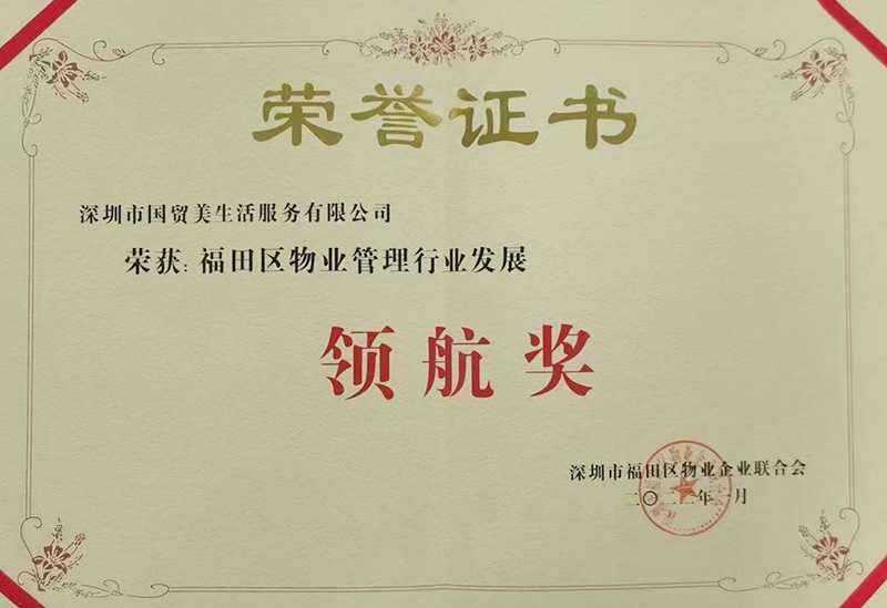 2022-12-02國貿美生活公司榮獲“福田區(qū)物業(yè)管理行業(yè)發(fā)展領航獎”稱號近日,由深圳市福田區(qū)物業(yè)企業(yè)聯(lián)合會舉辦的福田區(qū)物業(yè)管理行業(yè)突出貢獻單位和個人評選活動,揭曉獲獎名單,國貿美生活公司榮獲“福田區(qū)物業(yè)管理行業(yè)發(fā)展領航獎”稱號。 -