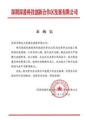 2021-08-05物業(yè)監(jiān)理公司負(fù)責(zé)深港科創(chuàng)公司監(jiān)理項目獲贊 -