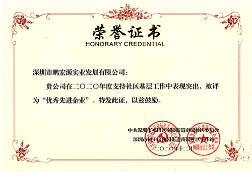 2020-12-23鵬宏源公司榮獲福田區(qū)南園街道“優(yōu)秀先進(jìn)企業(yè)”稱號(hào) -