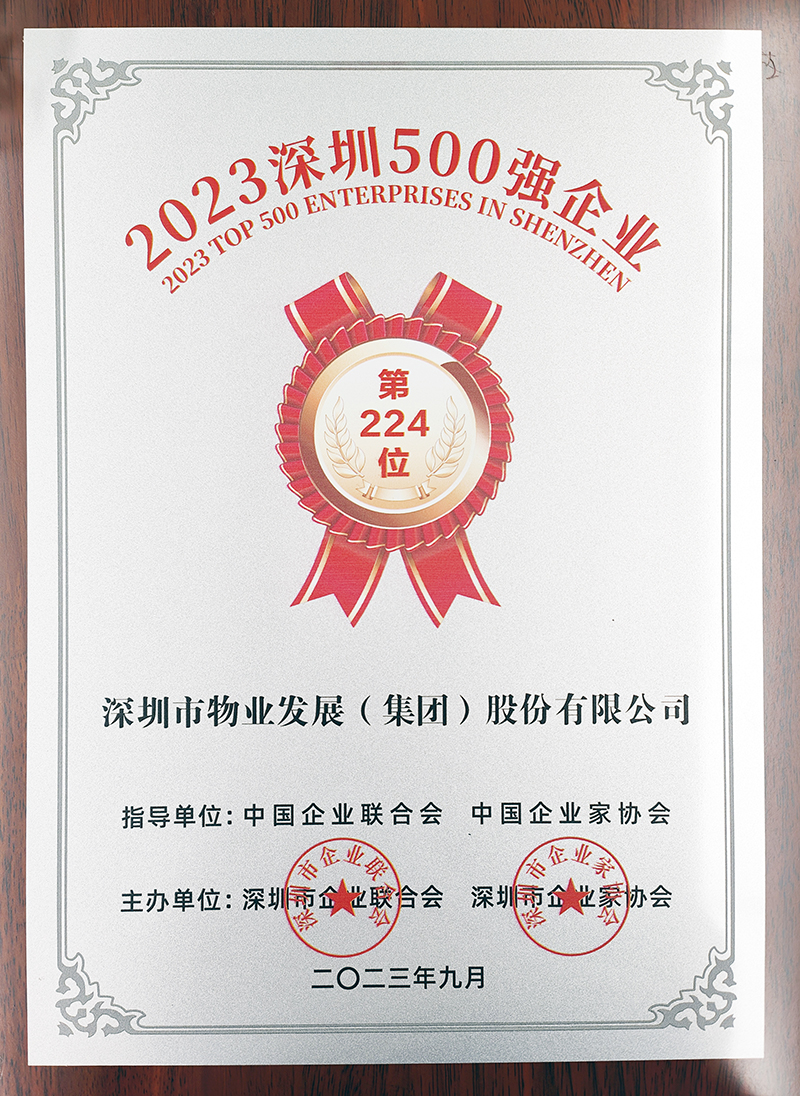 近日,深圳市企業(yè)聯(lián)合會(huì)、深圳市企業(yè)家協(xié)會(huì)發(fā)布“2023深圳500強(qiáng)企業(yè)”榜單,深物業(yè)集團(tuán)憑借卓越的綜合實(shí)力再度上榜,位列第224位。