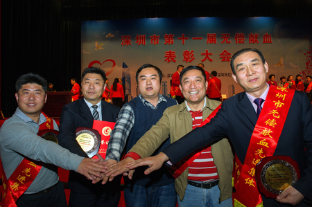 3月27日,深圳市衛(wèi)生和計(jì)劃生育委員會(huì)、深圳市紅十字會(huì)在市民中心會(huì)堂隆重召開全市第11屆無償獻(xiàn)血表彰大會(huì),集團(tuán)公司下屬國貿(mào)汽車公司、國貿(mào)物管公司國貿(mào)大廈管理處和福民新村管理處等3家單位被授予“深圳市無償獻(xiàn)血先進(jìn)集體”稱號(hào);江昊、杜鋒、李德財(cái)和王誠等四名員工獲得全國無償獻(xiàn)血奉獻(xiàn)金獎(jiǎng);李德財(cái)和王誠還獲得全國無償獻(xiàn)血志愿服務(wù)獎(jiǎng)。
