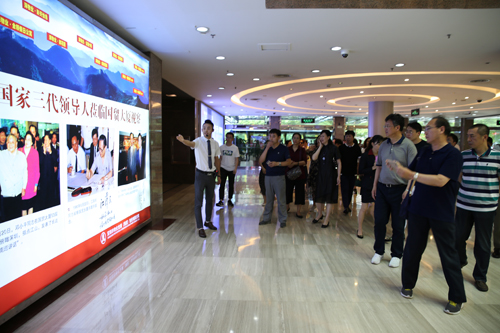培訓(xùn)班學(xué)員參觀了國家領(lǐng)導(dǎo)人、國外政要首腦登臨國貿(mào)大廈影像資料展示區(qū)域,并來到國貿(mào)大廈53層鄧小平同志發(fā)表“南方談話”的歷史現(xiàn)場,親身感受那個(gè)聲震世界的歷史時(shí)刻。參觀過程中,深物業(yè)集團(tuán)黨群辦公室工作人員詳細(xì)介紹了國貿(mào)大廈的相關(guān)歷史,建設(shè)過程中創(chuàng)造“三天一層樓”的“深圳速度”,及鄧小平同志發(fā)表“南方談話”,掀起中國改革開放的新一次浪潮。國貿(mào)大廈從此成為“深圳速度的體現(xiàn),改革開放的象征”。