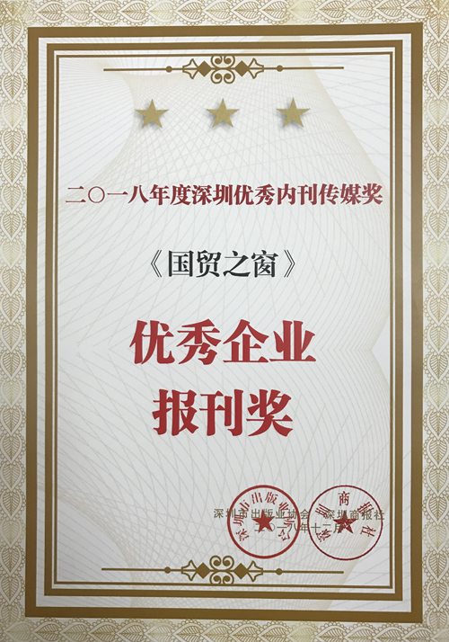 12月14日,深圳市出版業(yè)協(xié)會召開“深圳企業(yè)內(nèi)刊界2018年內(nèi)刊傳媒獎頒獎大會”,揭曉深圳優(yōu)秀內(nèi)刊傳媒獎獲獎名單,深物業(yè)集團(tuán)企業(yè)內(nèi)刊《國貿(mào)之窗》榮獲“2018年度深圳優(yōu)秀內(nèi)刊傳媒獎”。自2009年起,《國貿(mào)之窗》連續(xù)十年榮獲此獎項。