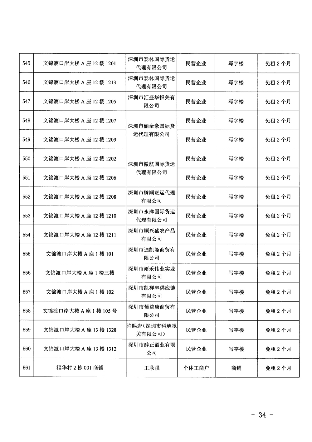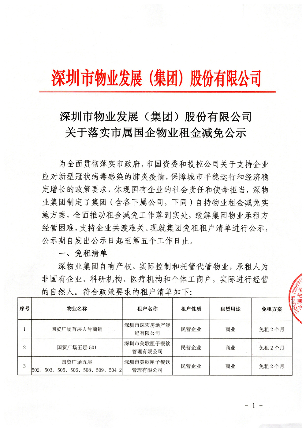 關(guān)于落實市屬國企物業(yè)租金減免公示