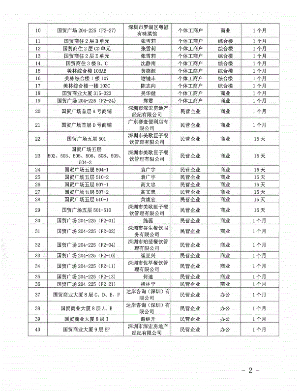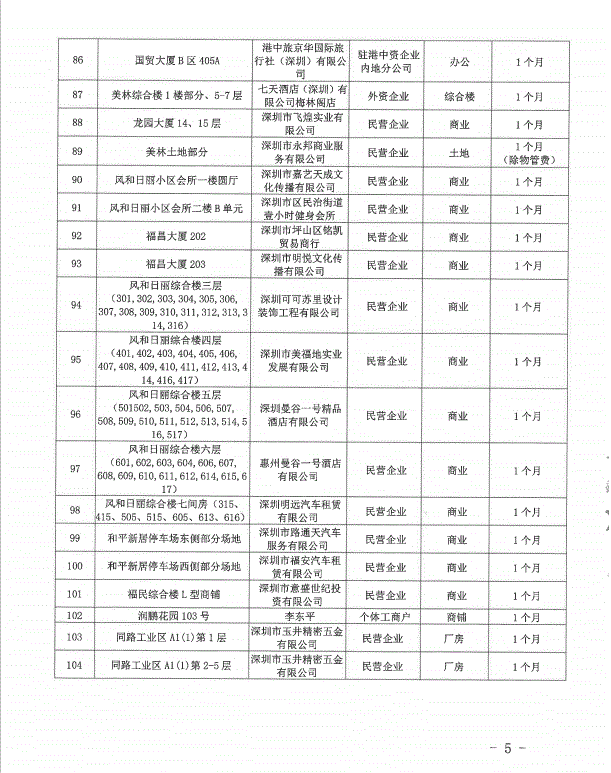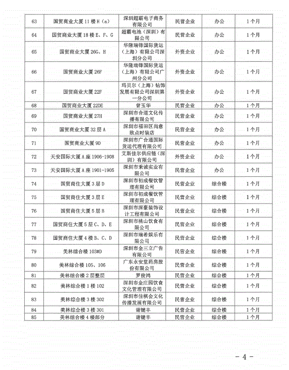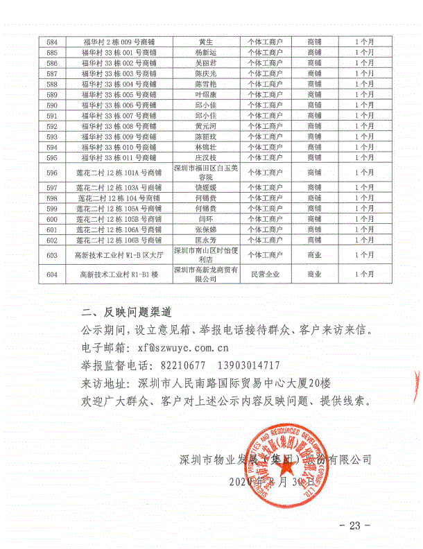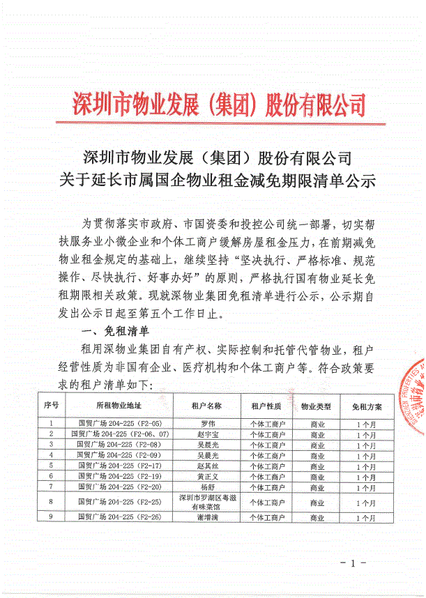 深物業(yè)集團(tuán)關(guān)于延長市屬國企物業(yè)租金減免期限清單公示