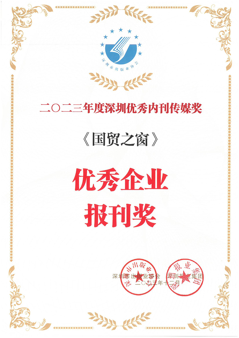 2023-12-27《國貿(mào)之窗》連續(xù)十五年榮獲深圳優(yōu)秀內(nèi)刊傳媒獎“優(yōu)秀企業(yè)報刊獎”稱號12月21日,由深圳市出版業(yè)協(xié)會主辦的“深圳企業(yè)內(nèi)刊界2023年度總結(jié)表彰頒獎大會”順利召開,深物業(yè)集團(tuán)企業(yè)內(nèi)刊《國貿(mào)之窗》榮獲2023年度深圳優(yōu)秀內(nèi)刊傳媒獎“優(yōu)秀企業(yè)報刊獎”稱號。自2009年起,《國貿(mào)之窗》連續(xù)十五年榮獲此獎項。