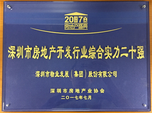 集團公司榮獲“深圳市房地產開發(fā)行業(yè)綜合實力二十強”稱號